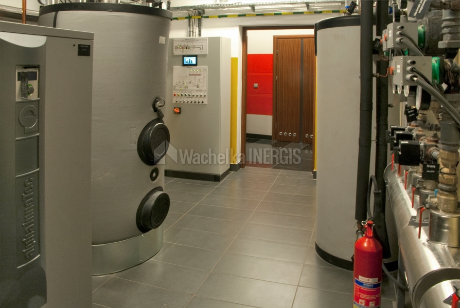 Die Hauptinnovation ist die Wärmepumpe, die mit dem vertikalen Erdkollektor (Erdwärmesonden) in der Form von 30 Bohrlöchern, 40m tief, und mit der Fußbodenheizung mit der Gesamtfläche von ca. 1150m2 zusammenarbeitet. Die verwendete Lösung ermöglicht, im Winter kostengünstig und umweltfreundlich Erdwärme zu gewinnen.